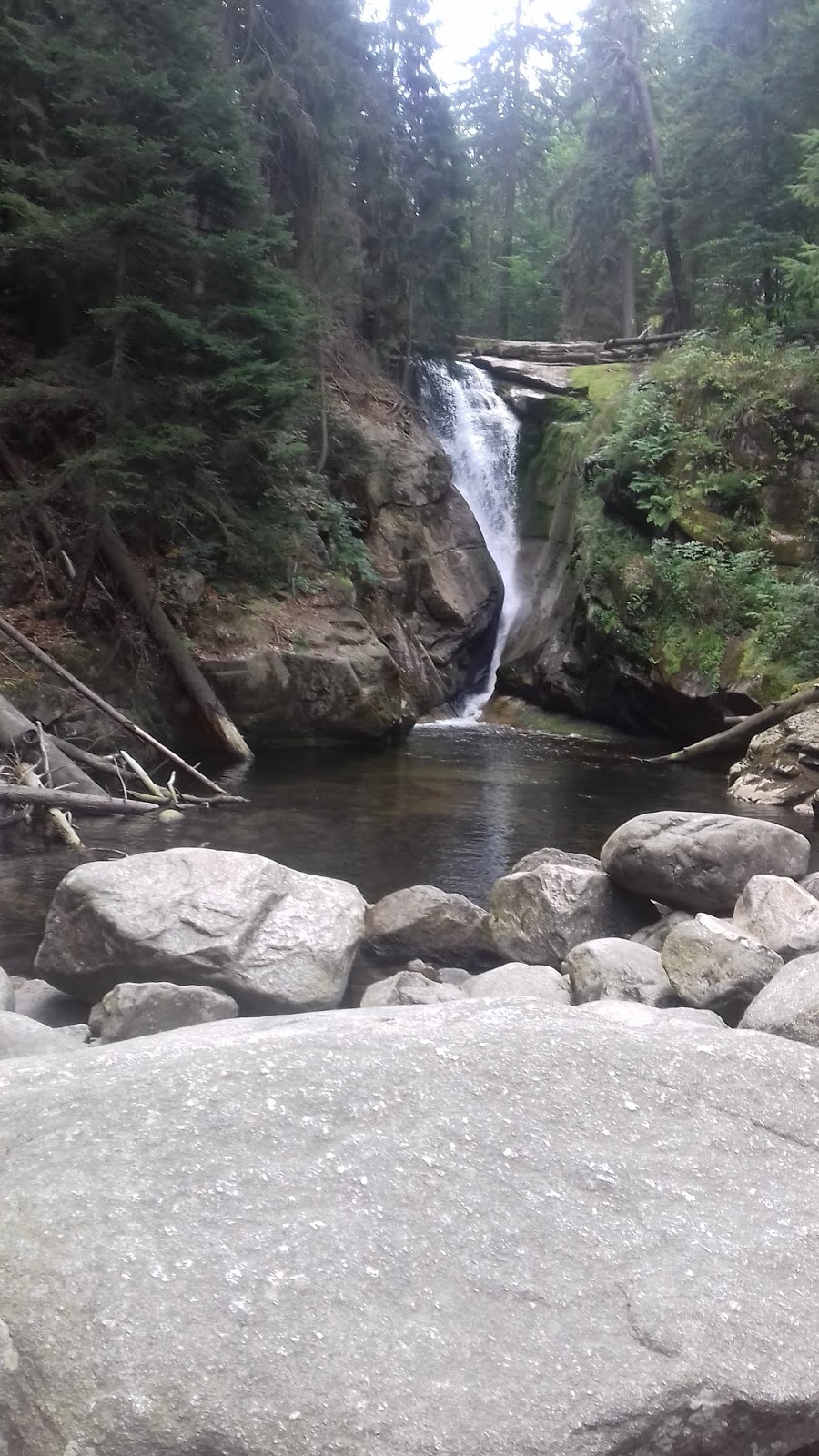 Do tego zbiornika wpada taki oto uroczy strumyczek. To parę kroków w las, a już pachnie jedynym niepowtarzalnym zapachem karkonoskiego lasu.